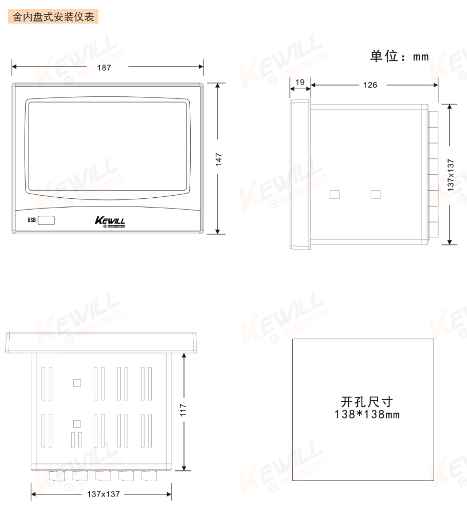 1…5V、0…5V、-5…5V、0…10V、-10…10V熱電阻:PT100、Cu50、Cu53、Cu100 熱電偶:K、S、B、J、R、N、T、E、WRe3-25、WRe5-26、F1、F2 頻率信號:?0…10000Hz(定制) 信號測量范圍 分類: 信號類型 可測量范圍 精度(25℃) 電流: 4…20mA 4.00…20.00mA ±0.2% 0…10mA 0.00…10.00mA ±0.2% 0…20mA 0.00…20.00mA ±0.2% 4…20mA開方 4.00…20.00mA ±0.2% 電壓mV: 0…20mV 0.00…20.00mV ±0.2% ?-20…20mV ?-20.00mV…20.00mV ±0.2% 0…100mV 0.00…100.00mV ±0.2% ?-100…100mV -100.00mV…100.00mV ±0.2% 頻率: Fr 0…10000Hz 1Hz 熱電阻: Pt100 -200.0…650.0℃ ±0.5℃ Cu50 -50.0…140.0℃ ±0.5℃ Cu53 -50.0…150.0℃ ±0.5℃ Cu100 -50.0…150.0℃ ±0.5℃ 熱電偶: K ?-200…1372℃ ±2℃ S -50…100℃ ±4℃ 100…1768℃ ±3℃ B 250…500℃ ±5℃ 500…1820℃ ±3℃ J ?-210…1000℃ ±2℃ R ?-50…100℃ ±4℃ 100…1768℃ ±3℃ N -200…1300℃ ±3℃ T -200…400℃ ±2℃ E -200…1000℃ ±2℃ WRe3-25 0…2315℃ ±5℃ WRe3-26 0…2310℃ ±5℃ F1 700…2000℃ ±2℃ F2 700…2000℃ ±2℃ 記錄儀尺寸: 面板187*147mm,深度145mm, 開孔138*138mm 顯示屏: 7?寸彩色觸摸液晶屏,?800*480?分辨率 測量通道*: 最多24路萬能模擬輸,可擴展至32路(頻率信號需定制) 測量精度: ±0.2%F. S. 采樣周期: 1?秒 報警繼電器*: 16路常開繼電器,?250VAC 3A,?30VDC3A(阻性負載) 變送輸出: 最多8路4…20mA變送輸出, 負載≤750Ω, 精度0.2% 24VDC配電: 2路24VDC±10%?,總輸出電流≤120mA RS485通訊: 1路RS485?通訊接口, 標準Modbus RTU?協(xié)議 Ethernet通訊*: 10/100 Base-T RJ45?端口,標準Modbus TCP?協(xié)議(≤3?個連接) USB接口: USB2.0, 支持32G大容量優(yōu)盤 微打接口*: TLL?微型打印機接口 供電電源: 交流100…240VAC 50Hz;直流24VDC±10%(反接保護)功率≤20W 預熱時間: 接通電源后30分鐘 工作環(huán)境: 溫度:?-10…60℃ 濕度:?0…85%RH(不結(jié)露) EMC抗干擾 電源群脈沖2000V, 信號群脈沖1000V ESD防靜電: 接觸放電?4000V?空氣放電8000V 耐電壓: AC220V?供電 端子與地之間1500V DC24V?供電 端子與地之間500V 隔離型端子與端子之間1000V 絕緣電阻: AC220V?供電 直流試驗電壓?500V 20MΩ DC24V?供電直流試驗電壓?100V 5MΩ 記錄間隔: 1秒、2秒、5秒、10秒、15秒、30秒 1分、2分、5分、10分、30分、1小時 數(shù)據(jù)內(nèi)存: 64MB內(nèi)存,?90萬(900K)條記錄 記錄時長: 32通道1秒記錄間隔,記錄10天,動態(tài)循環(huán)覆蓋存儲 其它記錄: 報警列表、掉電記錄、操作日志各256條,循環(huán)覆蓋存儲 安裝方式: 盤裝,室內(nèi),面板IP65防護等級 記錄儀重量: 1100g 真空度算法*: 配合真空計輸出信號,以真空形式計算、存儲、顯示數(shù)據(jù) 上位機數(shù)據(jù)管理軟件*: 支持查看優(yōu)盤數(shù)據(jù)導出,單機實時監(jiān)控數(shù)據(jù) 支持曲線和數(shù)據(jù)兩種展現(xiàn)方式,可導出EXCEL報表 ?