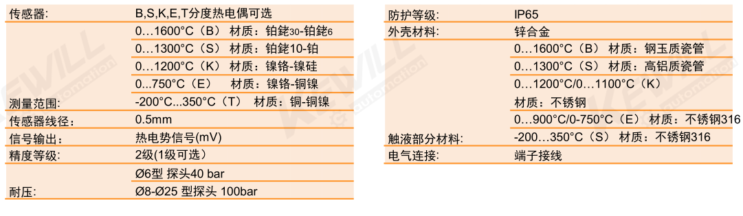 類型: 熱電偶溫度傳感器